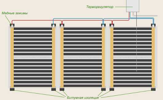 Схема укладки и соединения инфракрасного пленочного теплого пола