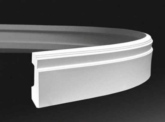 Гибкий профиль из полиуретана (Flex) – декоративный элемент для завершения оформления напольного покрытия, позволяющий скрыть неровности в местах прилегания стен и пола, а также незаметно проложить провода. Гибкие изделия из полиуретана повторяют линейку стандартных изделий по размерам и форме, и отличаются от них составом материала – для их производства в полиуретан добавляют каучук, что позволяет добиваться изгиба изделия по радиусу 0,5 м.