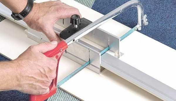 Для того чтобы точно отрезать изделиепод углом 45º, нужно обзавестись специальным приспособлением под названием стусло. Для распиловки плинтусов МДФ лучше использовать пилу с мелким зубом, лучше ножовку по металлу, чтобы не рвать бумагу, покрывающую плинтус. Отрезки плинтуса зачистите тонкой шлифовальной бумагой и склейте.