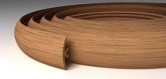 Если вам нужен качественный гнущийся плинтус, то хорошим решением будет композитная древесно-наполненная окантовка. Изготовляется она по новейшим технологиям путем литьевой формовки и прессования.