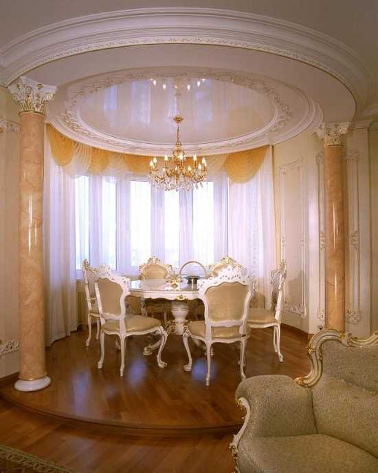 Традиционные потолочные и напольные галтели хорошо обрамляют помещение прямоугольной формы. Но что делать, если у вас нестандартная комната: с колоннами, полукруглыми стенами, или натяжным потолком сложной конфигурации?