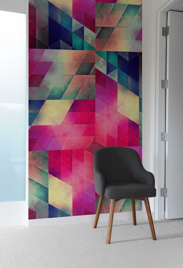 На следующем фото показана по-настоящему уникальная композиция из геометрической плитки от компании Bilk, для создания которой были использованы плиточные материалы различных ярких тонов розового, зеленого, желтого и синего цветов.