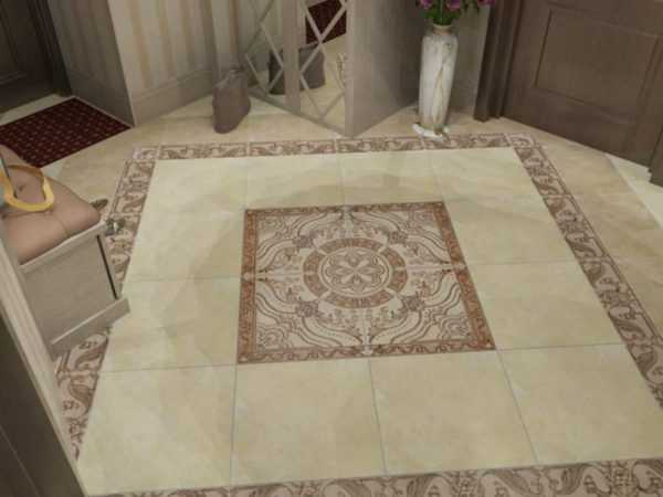 В коридоре хорошо смотрится комбинированная по цвету плитка, например, светлая и темная