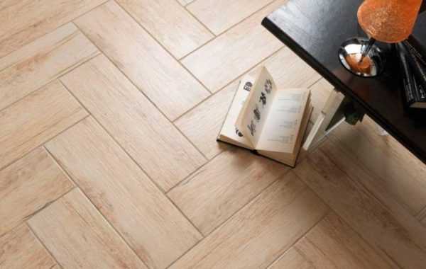 Плитка под дерево имеет прямоугольную форму. Традиционная елочка под паркет собирается при помощи плашек размерами 15х45 см, 12х60 или 15х60. Можно увидеть в продаже длинные модули размерами 20х80 см. Внешне они похожи на инженерную доску, стоят при этом намного дороже плитки стандартных размеров.