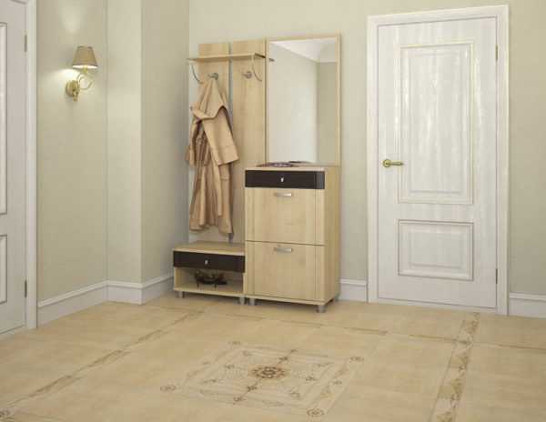 Сегодня многие владельцы квартир выделяют место для обуви, находящееся возле входной двери. Одновременно с этим, пол в прихожей может иметь комбинированное покрытие. Считается, что применение нескольких типов покрытий визуально увеличивает свободное пространство, добавляя больше места. Не следует забывать о том, что пол должен гармонировать с основным интерьером помещения.