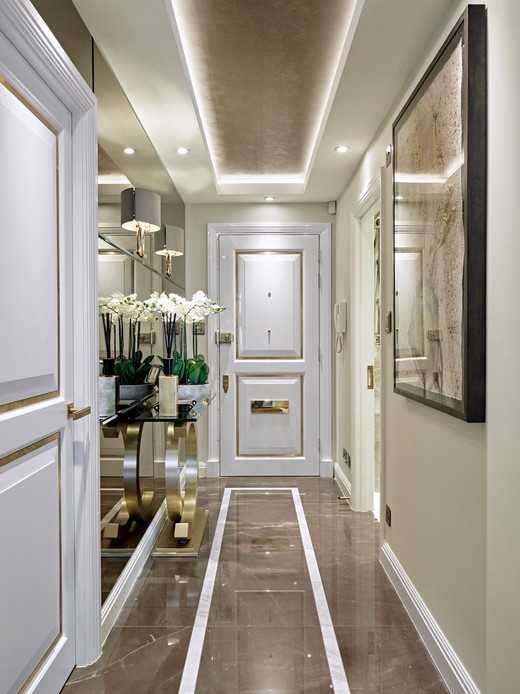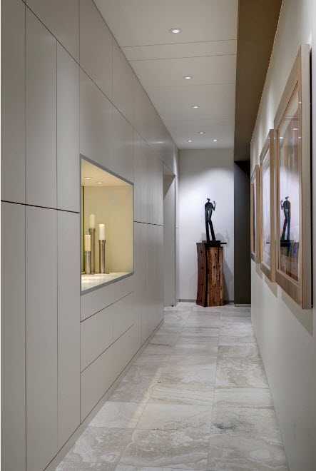 До недавних пор кафельная облицовка в коридорах была не очень распространена. Речь идёт о наших, отечественных реалиях. Считалось, что этот материал является холодным, казённым и неуютным. Место ему отводилось, как правило, лишь на кухнях и в санузлах. Если и клали кафель, то только на небольшом участке возле входной двери (во влажно-грязной зоне). Но сейчас всё иначе. Если пролистать дизайнерские интерьеры за последние лет пять, можно обнаружить, что плитка в коридорах (не в прихожих, а именно в коридорах) встречается чуть ли не чаще, чем ламинат или паркет.