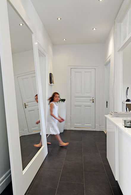 2. Светлую в светлом коридоре, тёмную — в тёмном. Это позволяет сохранить «цветосветовую» атмосферу: если хочется, например, чтобы коридор оставался светлым, надо и для пола выбрать что-нибудь нетёмное.