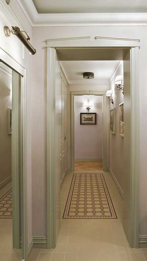 Применение более насыщенных цветов оправдано тогда, когда в коридоре есть окна, выходящие на юг.