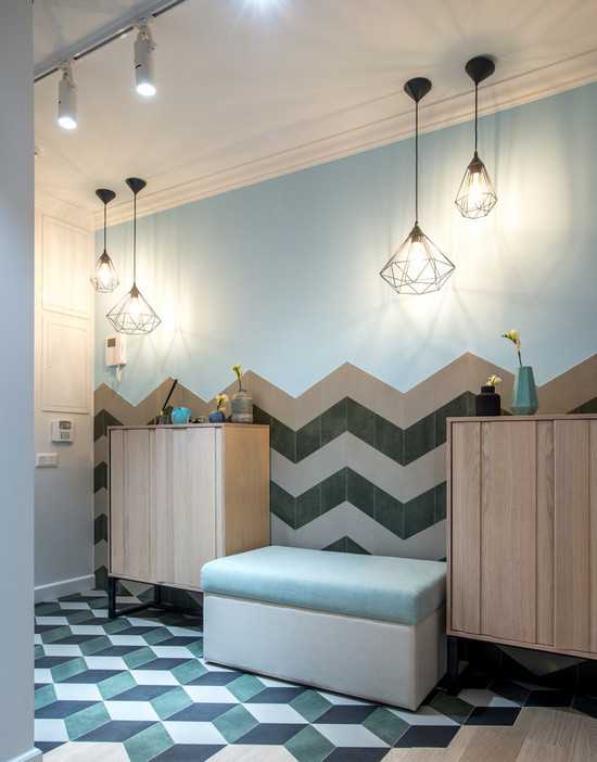 Возможность привнести дополнительные нюансы. Ввести, например, немного цвета в тусклый коридор, разнообразить интерьер узором, добавить геометрическую составляющую. Это позволит сделать коридор ярче, легкомысленнее, свежее, динамичнее.