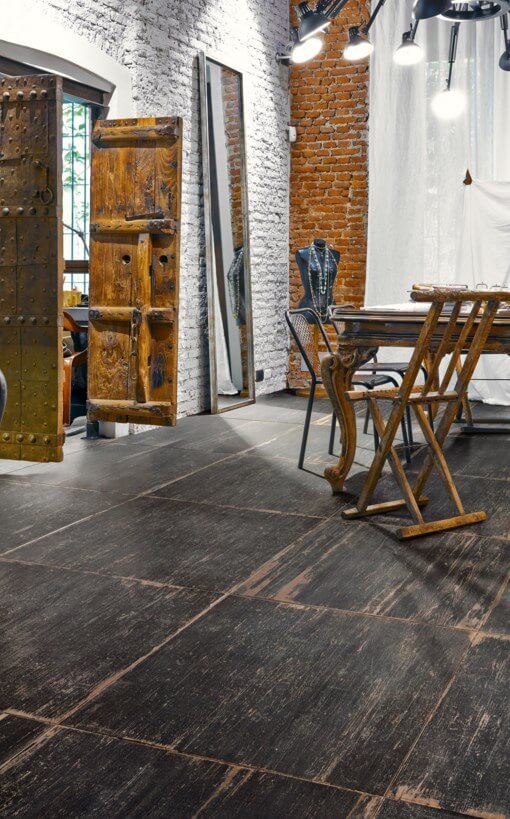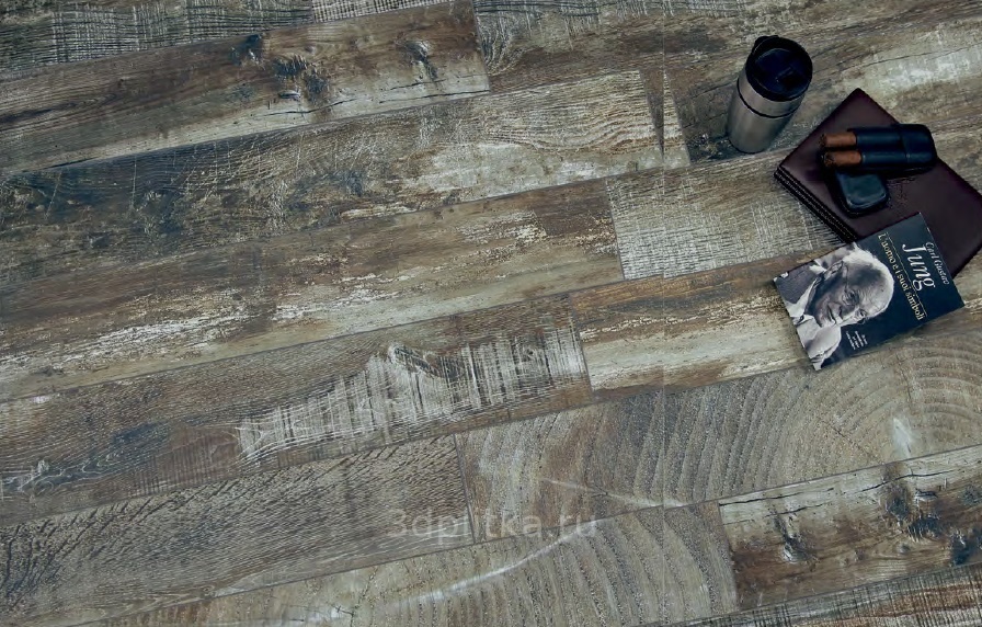 Мода на интерьеры в стиле «лофт» и материалы «с историей» привела к появлению многочисленных коллекций керамогранита, копирующего старые доски с потертостями, царапинами и иными отпечатками времени.