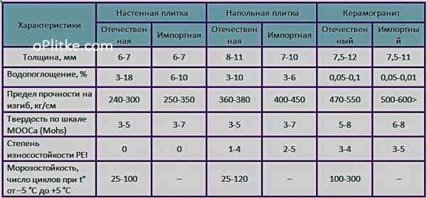 Далее приведены эксплуатационные показатели, в соответствии с которыми выбирают плиточный материал для пола.