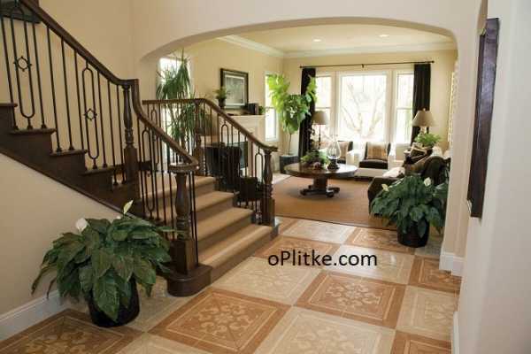 В классический интерьерный стиль вписывается керамическая плитка для пола в прихожую под дерево, камень, паркет. Металлизированный материал подойдет для стиля лофт. В хай-теке тоже уместна имитация стали или бронзы. Для стилевых вариаций кантри хороши естественные тона плитки – серый, терракотовый, светло-коричневый. Если выбирается материал с орнаментом, желательно чтобы он гармонировал с материалом стен и формой помещения.