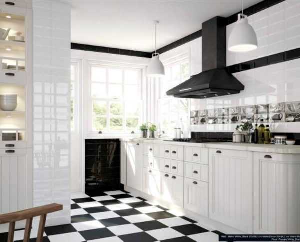 Следует учесть то, что изделия белого и черного цветов являются маркими, а сочетание этих двух цветов всегда остается популярным. Чередование становится украшением любого интерьера, добавляют контрастные фигуры в виде ромбов, диагональных линий, укладывают плитку в шахматном порядке.