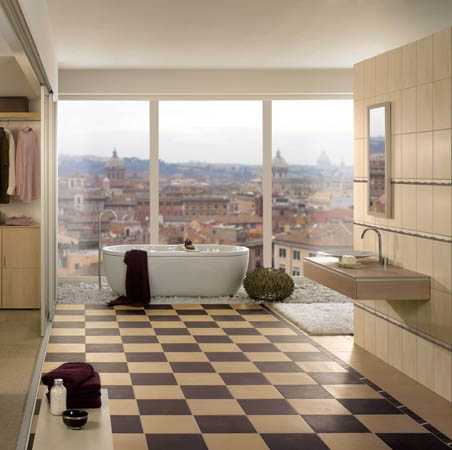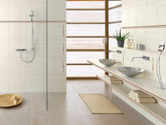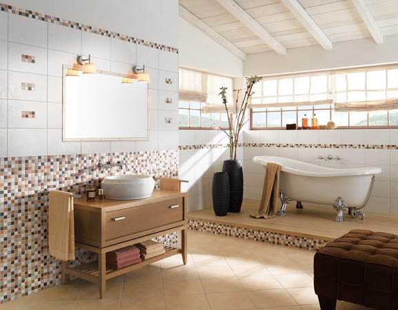 Сегодня производители керамической плитки представляют свои изделия коллекциями, которые состоят из базовой настенной плитки, которая будет фоном ванной комнаты, и декоративной. Для декоративных целей обычно используются плитка с рисунком, фриз и т.д. Почти в каждую коллекцию кафеля для ванной комнаты входит напольная плитка, но если она вам не нравится, можно выбрать ее по своему усмотрению из других коллекций.