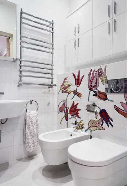 Флористическая тема сегодня лидирует в дизайнерских идеях оформления ванной комнаты. Популярностью пользуется керамическая плитка, имитирующая натуральные материалы: камень, дерево мрамор.