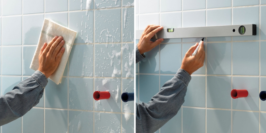 - Заполните зазор между плиткой и стеной силиконовым герметиком.