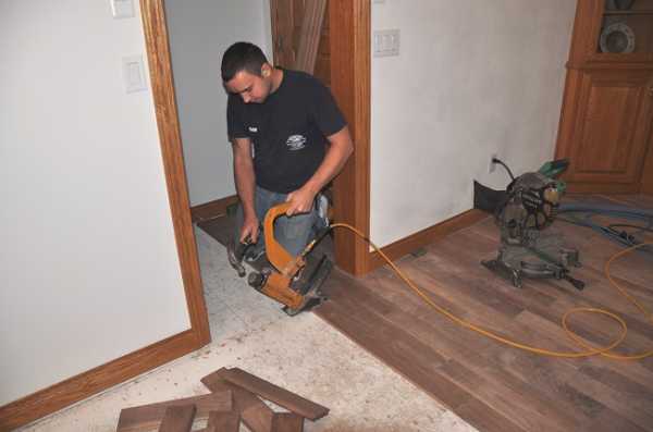 ΠΠΎΠ³Π΄Π° ΠΊΠ°ΡΠ΅Π»Ρ ΡΠΊΠ»Π°Π΄ΡΠ²Π°Π΅ΡΡΡ Π½Π° Π΄Π΅ΡΠ΅Π²ΡΠ½Π½ΡΠΉ ΠΏΠΎΠ», Π΅Π³ΠΎ ΡΠ»Π΅Π΄ΡΠ΅Ρ ΠΏΡΠΈΠΆΠΈΠΌΠ°ΡΡ ΠΊ ΠΊΠ»Π΅Ρ, ΠΏΡΠΈΠΌΠ΅Π½ΡΡ ΡΠ΅Π·ΠΈΠ½ΠΎΠ²ΡΠΉ ΠΌΠΎΠ»ΠΎΡΠΎΠΊ. ΠΡΠΈΠ»Π΅Π³Π°Π½ΠΈΠ΅ ΡΠΏΠ»ΠΎΡΠ½ΡΠ΅ΡΡΡ Π»Π΅Π³ΠΊΠΈΠΌΠΈ ΡΠ΄Π°ΡΠ°ΠΌΠΈ. ΠΠ°ΠΆΠ΄ΡΠΉ ΡΡΠ°ΡΡΠΎΠΊ ΠΏΠΎΠ²Π΅ΡΡ Π½ΠΎΡΡΠΈ ΠΎΠ±ΡΠ°Π±ΠΎΡΠ°Π½Π½ΡΡ ΠΊΡΠ°Π΅Π² Π½Π΅ΠΎΠ±Ρ ΠΎΠ΄ΠΈΠΌΠΎ ΠΏΠΎΠΊΡΡΡΡ ΠΏΠ»ΠΈΡΠΊΠΎΠΉ. ΠΠ°ΡΠ΅ΠΌ ΠΎΠ±ΡΠ°Π±Π°ΡΡΠ²Π°Π΅ΡΡΡ Π΄ΡΡΠ³Π°Ρ Π·ΠΎΠ½Π° ΠΏΠΎΠΌΠ΅ΡΠ΅Π½ΠΈΡ ΠΈΠ»ΠΈ ΡΠ»Π΅Π΄ΡΡΡΠΈΠΉ ΠΊΠ²Π°Π΄ΡΠ°ΡΠ½ΡΠΉ ΠΌΠ΅ΡΡ.