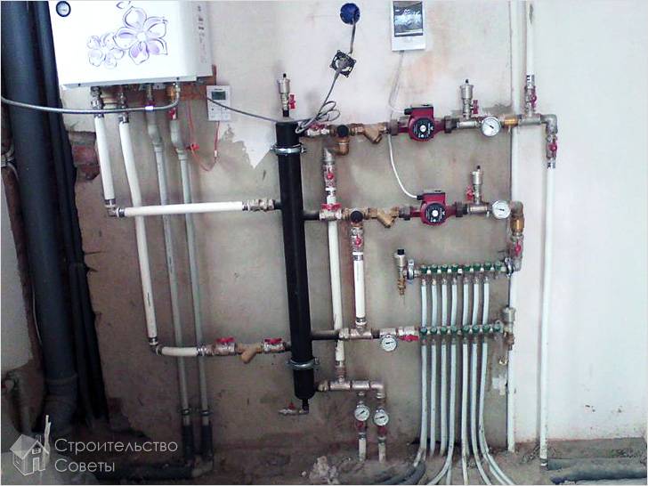 После того как определено место расположения коллектора и завершен его монтаж, нужно установить отопительный прибор и приступить к подсоединению теплого пола к котлу.