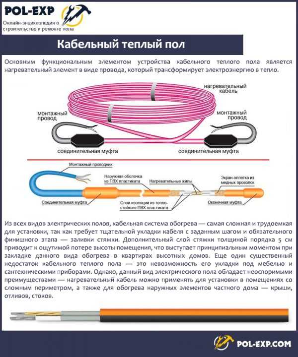 Электрические (кабельные) системы «теплый пол» использую как одножильный, так и двужильный нагревательный кабель. Каждой из систем требуется подключение к терморегулятору.