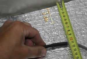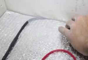 ![]() Шаг 17. Укладка гофры с датчиком пола | Радиус изгиба трубки не должен превышать 5 см. Длина той части гофры, которая лежит на полу, составляет примерно полметра от места изгиба. |