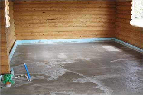 К заливке бетона в бане следует приступать после подготовки 15-сантиметровой основы, состоящей из смеси щебня, гравия и песка. Основу необходимо хорошо утрамбовать. Далее нужно предусмотреть уклон к приямку для последующего водооттока. Затем выполняется гидроизоляция напольного покрытия, а также грунтовка с последующей бетонной заливкой основания. В конце устраивается опалубка.
