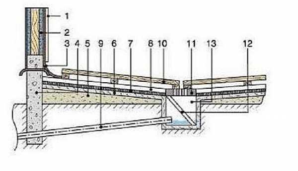 Примечание: при устройстве протекающих полов уклон выполнять не обязательно.