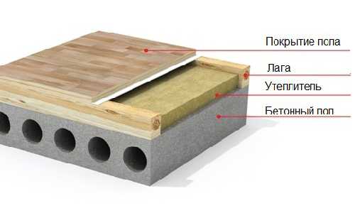 Теплоизоляция бетонного пола по лагам