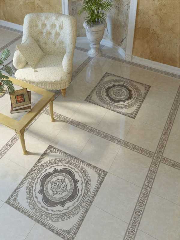 Керамическая плитка долговечна, легка в уходе. Тем, кто не хочет ходить по холодному полу, можно под покрытие установить «теплый пол».