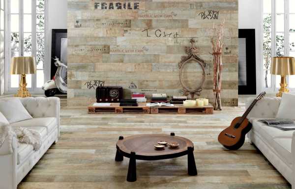 Этот вид покрытия прочный, надежный, устойчив практически к любому воздействию. А подбирая плитку в вашу гостиную, вы можете обратить внимание на разнообразие узоров, имитирующие любой материал, будь то камень или текстиль, что даст возможность на воплощение любого стиля интерьера.