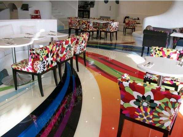 При достижении 3Д эффекта, выкладываются на пол полупрозрачные рисунки друг на друга. Затем аккуратно заливается смесь. Такое покрытие даст превосходство дизайну.