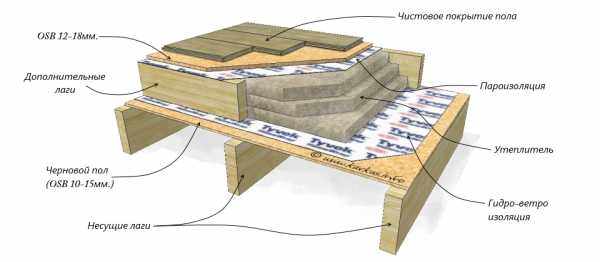 Схема утепления деревянного пола второго этажа – межэтажного перекрытия