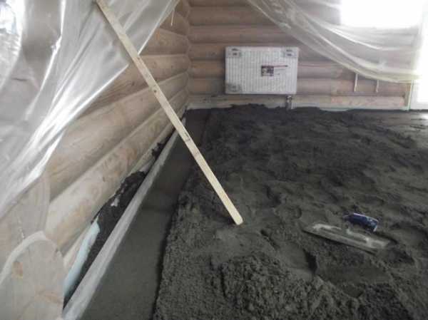 - На поверхность настилают армирующую сетку, готовят раствор, заливают стяжку.