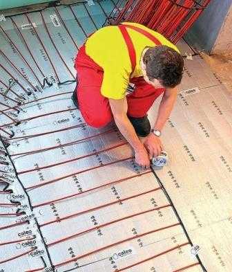 Внимание! Систему напольного обогрева делают в деревянном, бетонном полу. Для укладки системы в деревянном настиле требуются расчеты, разметки, чтобы в лагах сделать направляющие.