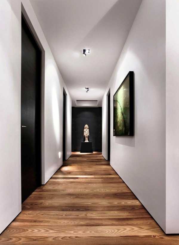 Комбинированный пол уберет монотонность интерьера, если в помещении длинный коридор. Соединив несколько покрытий, вы получите дополнительные прямые или же кривые линии. Если желания разделять пространство на несколько зон при помощи комбинирования разных покрытий у вас нет, то можно уложить плитку по всему помещению коридора. Особенный уют привносит отделка плиткой с имитацией дерева. Как выполняются яркие акценты комбинированной отделки, можно увидеть на фото. Эффектно выделяются дизайнерские решения плиточной облицовки в черно-белых и других контрастных оттенках.