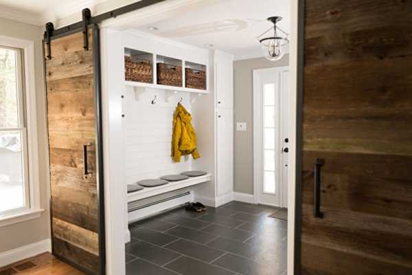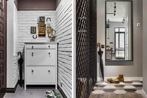 Если выложить плиткой отдельную часть прихожей, вы защитите пол от неблагоприятного воздействия. Комбинировать пол хорошо для того, чтобы разграничить пространство прихожей от коридора, студии и пр. Стыковые линии напольного покрытия будут выступать границами зонирования. Эффектный способ выделить прихожую как отдельную зону — применение цветового решения, которое будет значительно отличаться от общей стилистики. Для этого используют другой рисунок или расцветку.