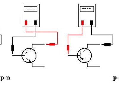 В зависимости от полярности транзистора (p-n-p или n-p-n) будит зависить лишь направление «прозвонки» переходов база-эмиттер и база-коллектор, с разной полярностью транзисторов направление будет противоположное.