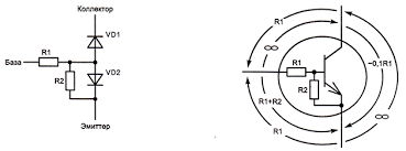 - База — Эмиттер — исправный переход будит вести себя как диод, то есть проводить ток только в одном направление.