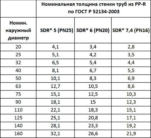 ΠΠ°ΡΠ΅ΡΠΈΠ°Π»Ρ Π΄Π»Ρ ΡΡΡΠ± PP-R Π΄ΠΎΡΡΡΠΏΠ½Ρ Ρ ΡΠ°Π·Π»ΠΈΡΠ½ΡΠΌΠΈ ΡΠΈΠΏΠ°ΠΌΠΈ ΡΡΠ΅Π½ΠΎΠΊ ΠΈ ΡΠΎΠ»ΡΠΈΠ½ΠΎΠΉ (Π½Π°ΠΏΡΠΈΠΌΠ΅Ρ, SDR 7,4, SDR 9, SDR 11, SDR 13,5 ΠΈ Ρ. Π΄.) Π² Π·Π°Π²ΠΈΡΠΈΠΌΠΎΡΡΠΈ ΠΎΡ ΡΡΠ΅Π±ΡΠ΅ΠΌΠΎΠ³ΠΎ Π½ΠΎΠΌΠΈΠ½Π°Π»ΡΠ½ΠΎΠ³ΠΎ Π΄Π°Π²Π»Π΅Π½ΠΈΡ. Π’ΡΡΠ±Ρ Ρ Π±ΠΎΠ»Π΅Π΅ ΡΠΎΠ»ΡΡΡΠΌΠΈ ΡΡΠ΅Π½ΠΊΠ°ΠΌΠΈ ΠΈΠΌΠ΅ΡΡ Π±ΠΎΠ»Π΅Π΅ Π²ΡΡΠΎΠΊΠΎΠ΅ Π½ΠΎΠΌΠΈΠ½Π°Π»ΡΠ½ΠΎΠ΅ Π΄Π°Π²Π»Π΅Π½ΠΈΠ΅, Π° ΡΡΡΠ±Ρ Ρ Π±ΠΎΠ»Π΅Π΅ ΡΠΎΠ½ΠΊΠΈΠΌΠΈ ΡΡΠ΅Π½ΠΊΠ°ΠΌΠΈ — Π±ΠΎΠ»Π΅Π΅ Π½ΠΈΠ·ΠΊΠΈΠ΅ Π½ΠΎΠΌΠΈΠ½Π°Π»ΡΠ½ΠΎΠ΅ Π΄Π°Π²Π»Π΅Π½ΠΈΠ΅. ΠΠ±ΡΠ°ΡΠΈΡΠ΅ΡΡ ΠΊ Π»ΠΈΡΠ΅ΡΠ°ΡΡΡΠ΅ ΠΈ ΠΏΠ΅ΡΠ΅ΡΠ½ΡΠΌ ΠΊΠΎΠ½ΠΊΡΠ΅ΡΠ½ΡΡ ΠΏΡΠΎΠΈΠ·Π²ΠΎΠ΄ΠΈΡΠ΅Π»Π΅ΠΉ ΡΡΡΠ± PP-R, ΡΡΠΎΠ±Ρ ΡΠ·Π½Π°ΡΡ ΠΎ ΡΠΎΠΎΡΠ²Π΅ΡΡΡΠ²ΡΡΡΠΈΡ Π½ΠΎΠΌΠΈΠ½Π°Π»ΡΠ½ΡΡ Π·Π½Π°ΡΠ΅Π½ΠΈΡΡ Π΄Π°Π²Π»Π΅Π½ΠΈΡ.