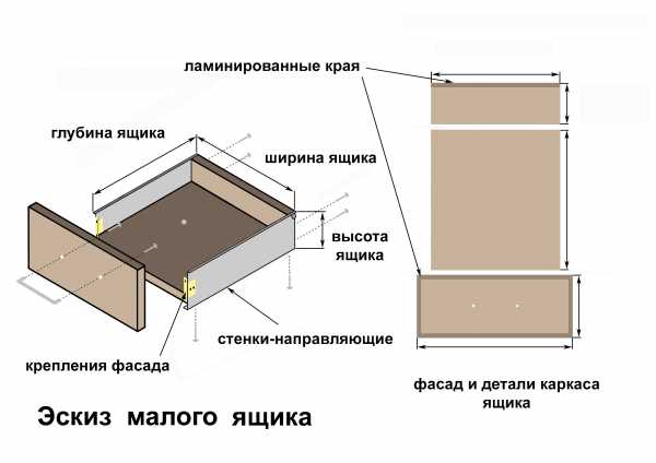 Соберите каркасы ящиков: зафиксируйте стенки-направляющие на основании ящиков с помощью саморезов по дереву, затем зафиксируйте заднюю стенку ящика — саморезы вкручиваются через отверстия в стенках-направляющих — сверлить отверстия в ЛДСП не требуется (рис 6).