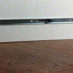 В этом случае, для того, чтобы извлечь ящик — Вам понадобится отогнуть пластиковый фиксатор направляющей.