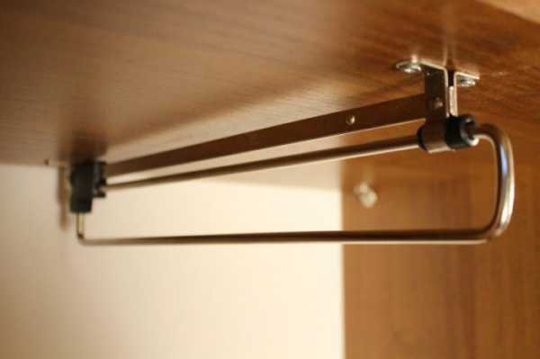 Если ширина гардеробной комнаты позволит, то можно поставить штангу, которая обладает спусковым механизмом. Пантограф удобен тем, что подходит идеально для обустройства маленькой гардеробной, где нельзя сделать антресоли.