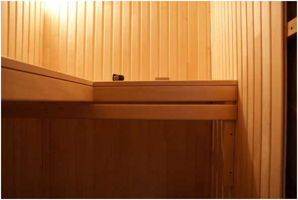 Древесина этих пород имеет низкую теплопроводность, благодаря чему Вы и Ваши гости будут чувствовать себя комфортно в сауне не обжигаясь телом о доски. Крепление полков саморезами выполняйте скрытым способом, изнутри. Для сбора не рекомендуем использовать гвозди, все же они не достаточно прочные и в дальнейшем будет сложнее разобрать конструкцию, а это Вам может понадобиться при замене полков.