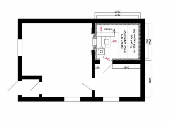 - если площадь позволяет, то можно обустроить полок, на котором можно не только сидеть с комфортом, но и лежать – 150 см.