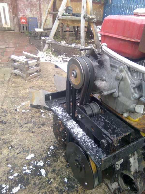 - максимальная скорость мотоблока-вездехода может быть увеличена за счет замены шкивов, либо изготовления двойных шкивов;