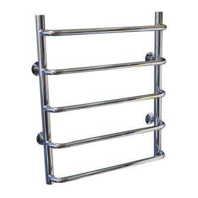 Полотенцесушитель из стали выпускают в форме лесенки с 8 секциями. Его мощность сравнительно ниже, чем у Grota Eco Classic 480×600 Э, поэтому на нагрев теплоносителя до 60 градусов требуется не менее 15 мин. В инструкции этого прибора указано наличие защиты от перегрева, кнопки включения. Крепится модель только в одном положении, поворот не предусмотрен.