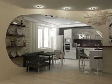 Пример разделения кухни на две части арочной конструкцией из ГКЛ