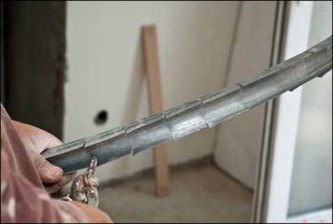 - С интервалом в несколько см наносят насечки на полосу и постепенно сгибают её ручным способом, затем тут же закрепляют конструкцию на профиле.