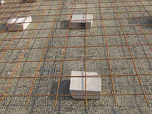 - В опалубку укладывают проволочный каркас из нескольких рядов связанной сетки и объединенной вертикальными соединениями.