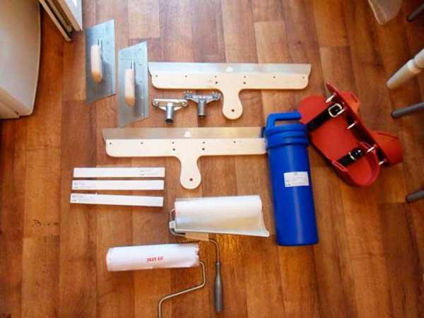 Для замешивания стяжки и укладки ее на пол требуются инструменты: