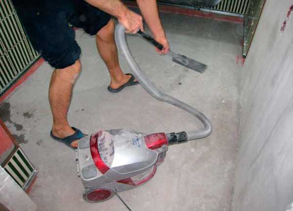 Перед укладкой стяжки необходимо тщательно очистить основание от пыли, грязи и жирных пятен. Сделать это можно сначала жестким веником, а затем строительным пылесосом.
